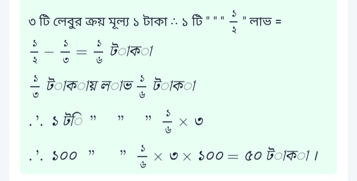 টাকায় ৩টি করে লেবু কিনে টাকায় ২টি করে বিক্রি করলে শতকরা কত লাভ হবে?